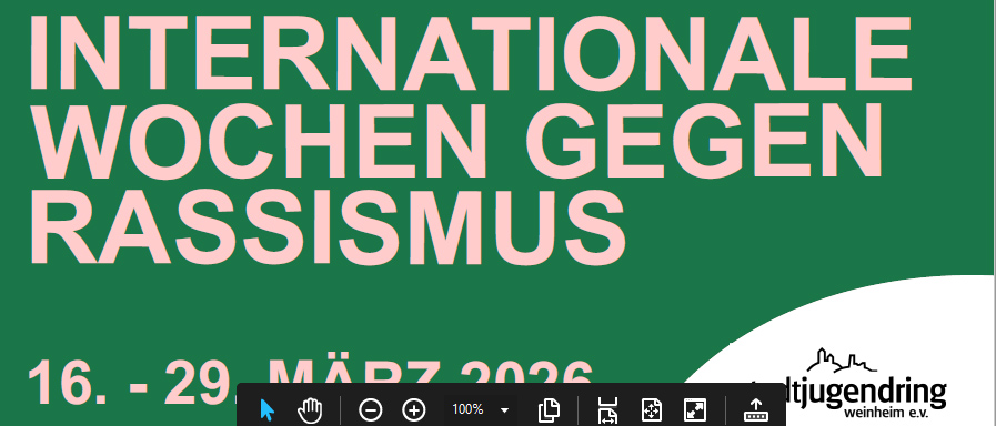 Die Internationalen Wochen gegen Rassismus finden jedes Jahr rund um den 21. März, den Internationalen Tag gegen Rassismus, statt – in Erinnerung an das Massaker von Sharpeville 1960, bei dem 69 Menschen bei einer Demonstration gegen die Apartheid in Südafrika erschossen wurden. Weltweit setzen in diesen Wochen tausende Veranstaltungen ein Zeichen gegen Rassismus und für eine offene, plurale Gesellschaft. Der Stadtjugendring Weinheim e.V. beteiligt sich mit diesem Abend an diesem wichtigen Zeichen.