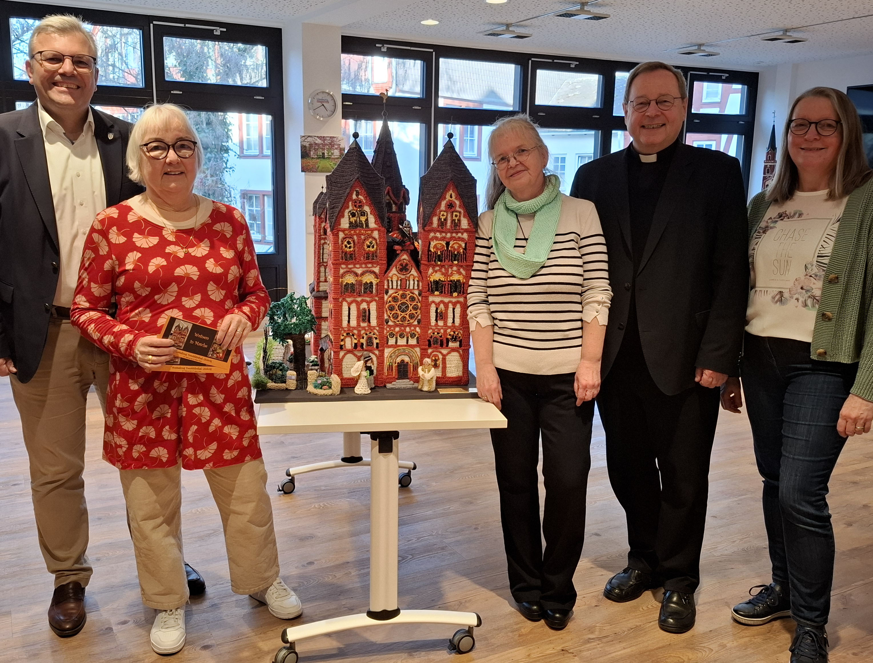 Bischof Dr. Bätzing bedankte sich mit einem Eintrag ins Gästebuch der Häkelgruppe. Dort steht nun: „Ganz herzlichen Dank den Künstlerinnen für die tolle Idee und die detailreiche Darstellung unseres besten Stückes in Limburg.“ Am 27. März endet die Ausstellung in Limburg und alle Exponate kehren zurück nach Weinheim – außer dem Dom, der als Schenkung in Limburg bleiben wird.