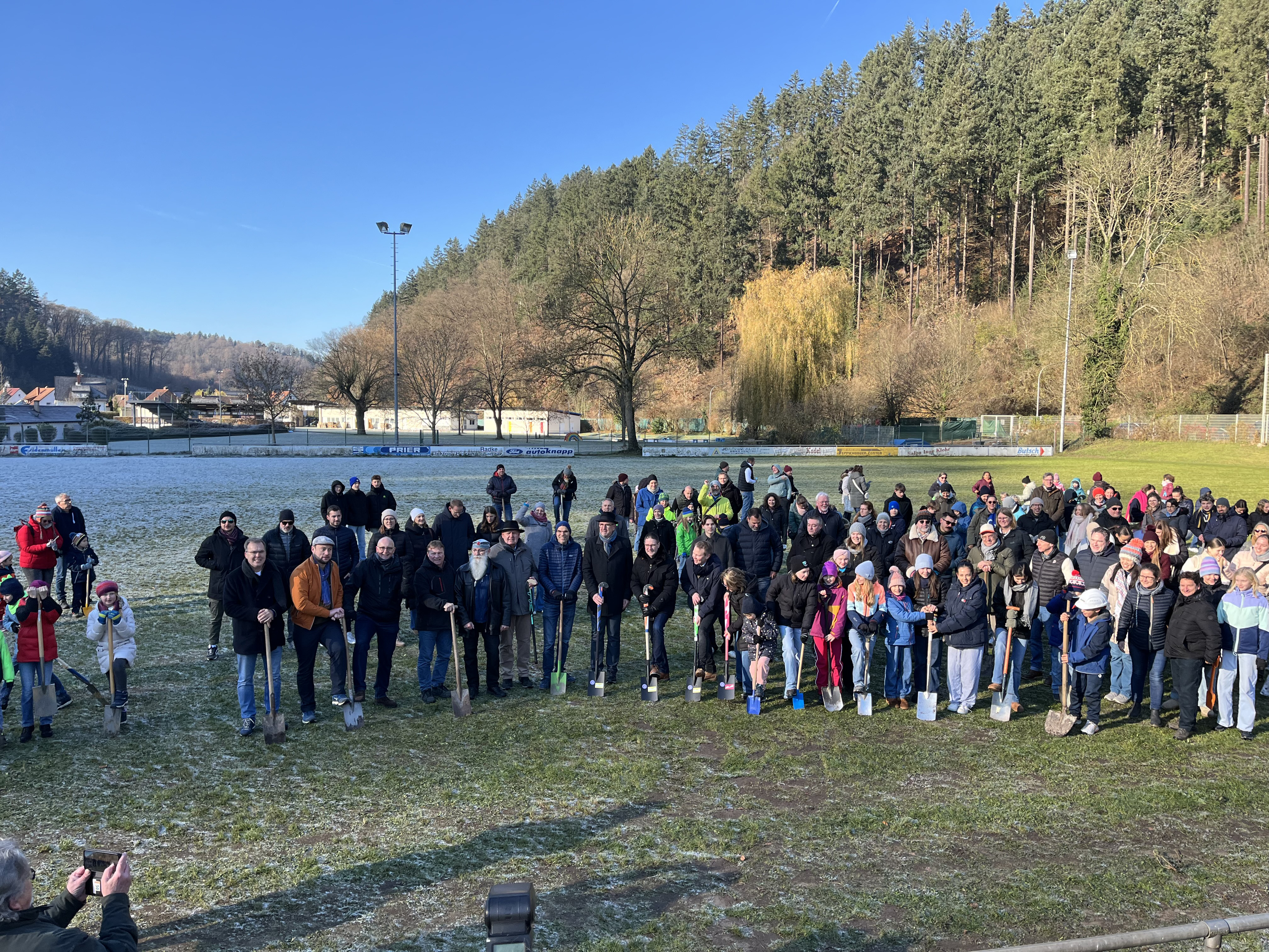 Ein kleines bisschen Erdbewegung, aber ein großer Tag für die Weinheimer Hockeyfamilie: Bei klirrend schönem Winterwett er hatten sich am 22. November kleine und große Sportler sowie Offizielle der Vereine und der Stadt Weinheim – Oberbürgermeister Manuel Just und Erster Bürgermeister Andreas Buske – versammelt, um zusammen die symbolischen Ersten Spatenstiche fürs Weinheimer Hockeygroßfeld vorzunehmen und dies zu feiern.