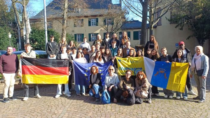 Es ist der Beginn einer Begegnung zwischen der Schule IES Las Maretas aus der Hauptstadt Arrecife und der Johann-Philipp-Reis-Schule im Kreis-Berufsschulzentrum in Weinheim. Am Freitag wurden Schülerinnen und Schüler bei einer Kennenlern-Tour durch Weinheim von Stadträtin und OB-Stellvertreterin Christina Eitenmüller und von OB-Referent Dennis Konath auf dem Rathaus begrüßt.