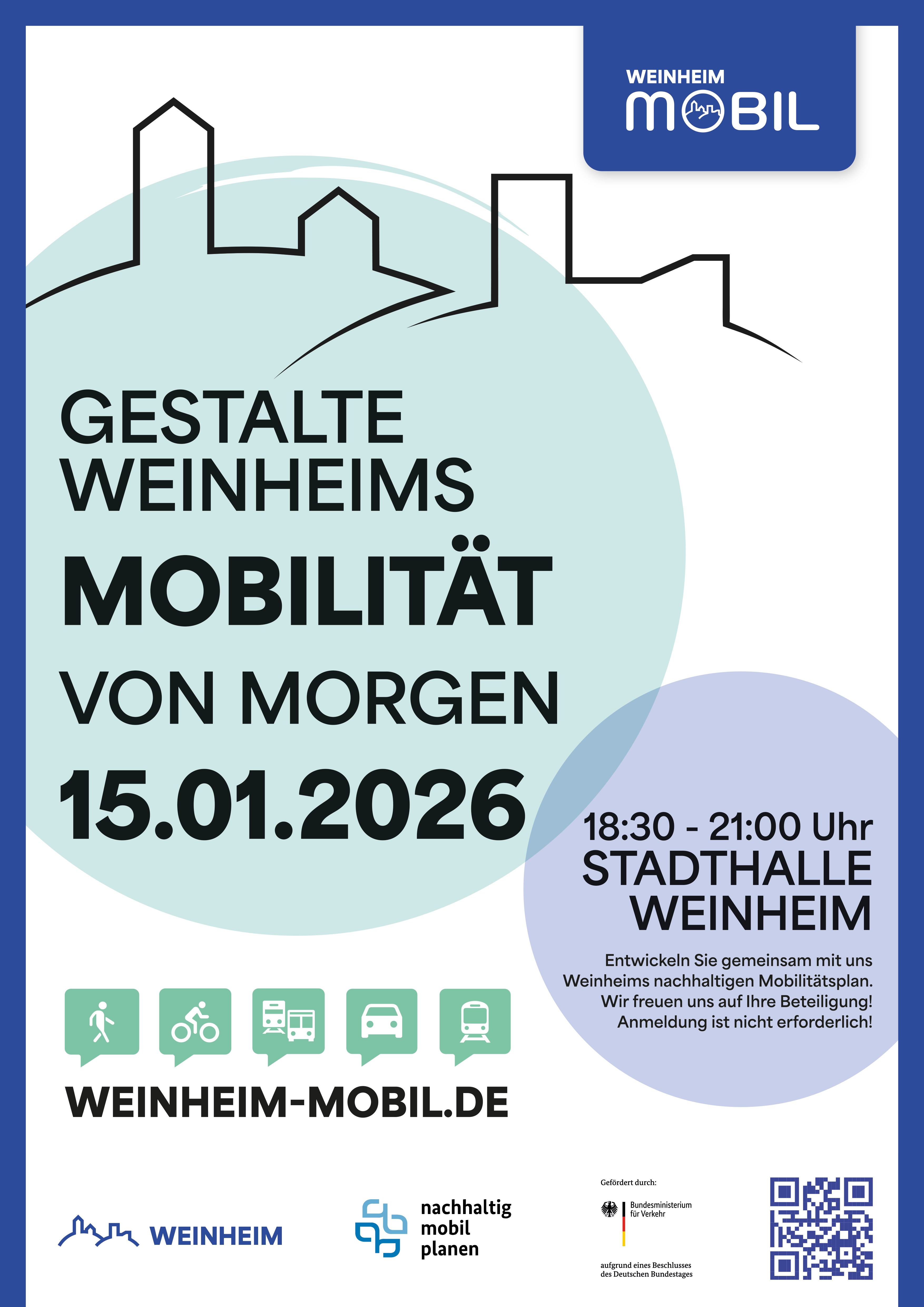 Seit Herbst 2024 arbeitet die Stadt Weinheim an einem nachhaltigen Mobilitätsplan, der Antworten auf diese Fragen liefert. Die Erstellung des nachhaltigen Mobilitätsplans mit dem umfassenden Planungs- und Beteiligungsprozess wird durch die Bundesförderung des Bundesministeriums für Verkehr und dem Land Baden-Württemberg unterstützt. Ein Meilenstein dieses Prozesses ist die zweite Öffentlichkeitsveranstaltung am Donnerstag, 15. Januar 2026, von 18:30 bis 21:00 Uhr in der Stadthalle Weinheim (Birkenauer Talstraße 1). Eine Anmeldung ist nicht erforderlich.