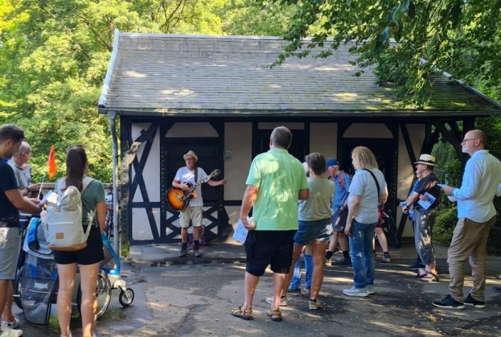 „Das Wandern ist des Müllers Lust.“ „Wenn wir erklimmen.“ „Im Frühtau zu Berge.“ Und so weiter. Wandern und Singen gehört einfach zusammen. Wer wüsste das besser als Dr. Torsten Fetzner, der frühere Weinheimer Bürgermeister und Musikus, der schon fast ganz Europa durchwandert hat – die Gitarre stets im Gepäck. Seit einigen Wochen nimmt er interessierte Wandersleute und Naturfans mit auf eine kleine Wanderung durch den Weinheimer Exotenwald, der in diesen Tagen angenehm kühl und frisch ist – das nächste Mal am Dienstag, 21. Oktober, 17 Uhr – zum letzten Mal in diesem Jahr.