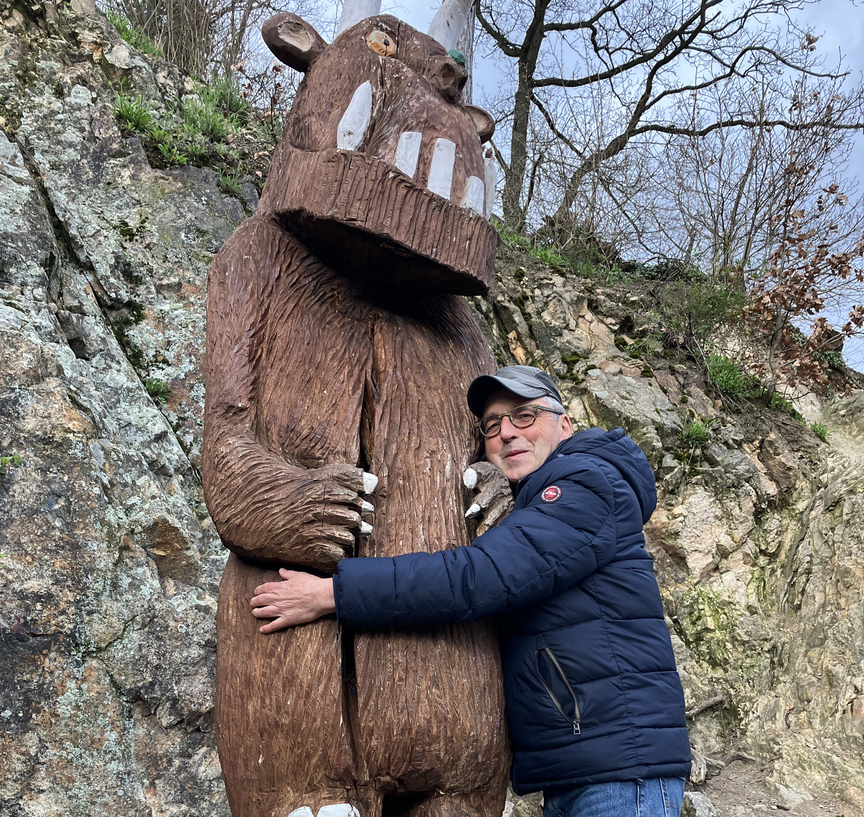 Vor über 25 Jahren kam das komisch-gruselige Waldmonster aus England nach Deutschland – im Weinheimer Beltz-Verlag erschien das erste Grüffelo-Buch auf Deutsch. Wie man weiß, ist Weinheim die deutsche Heimat des Grüffelo. Wegen des renommierten Kinderbuchverlages, aber auch wegen des Grüffelo-Pfades, der in Weinheim seit vier Jahren vom Fuß des Schlossberges hinaufführt in Richtung Burgruine Windeck. Es ist der einzige Grüffelo-Pfad in Deutschland, der kostenlos und jederzeit frei zugänglich ist. Die Grüffelo-Figur aus einer Weinheimer Eiche wurde erst vor wenigen Wochen ersetzt, jetzt steht da Grüffelo II.