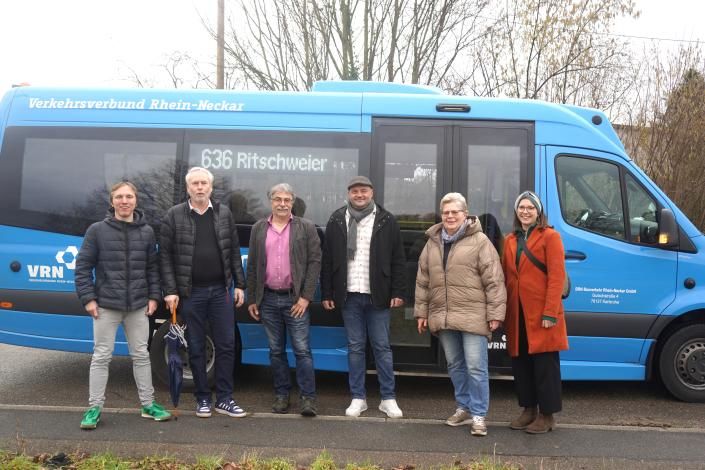 Die neue Linie wurde in enger Zusammenarbeit mit dem Verkehrsverbund Rhein-Neckar (VRN) sowie dem Busbetreiber Busverkehr Rhein-Neckar GmbH (BRN) entwickelt. Zugleich setzt die Stadt damit einen langjährigen Wunsch der Ortschaftsräte aus Ritschweier und Hohensachsen um, die sich eine bessere Anbindung an die Straßenbahn gewünscht hatten. Jetzt trafen sich Ortsvorsteherin Monika Springer aus Hohensachsen, Ortsvorsteher Carl-Friedrich Kippenhan zur Probefahrt mit Vertretern von VRN und BRN sowie des Weinheimer Amtes für Stadtentwicklung, in dem die Verkehrs- und Mobilitätsplanung der Stadt angesiedelt ist.