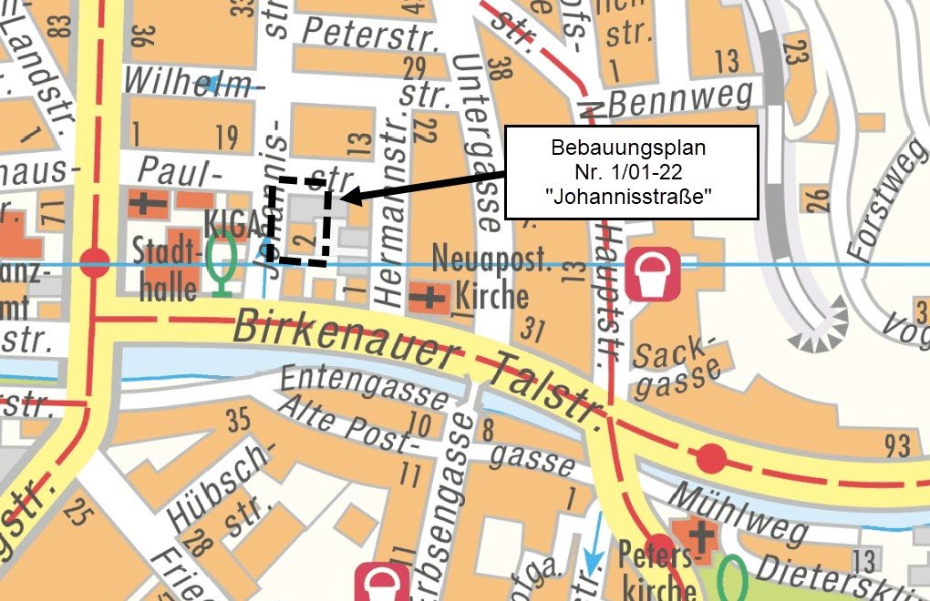 Der Ausschuss für Technik, Umwelt und Stadtentwicklung des Gemeinderats der Stadt Weinheim hat am 29.11.2023 die Aufstellung des Bebauungsplans Nr. 1/01-22 und der örtlichen Bauvorschriften für den Bereich "Johannisstraße" beschlossen. Der vorhabenbezogene Bebauungsplan wird im beschleunigten Verfahren nach §13a BauGB aufgestellt.