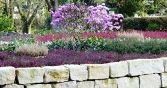 Im Ruhegarten wurde ein Hochbeet mit einer Natursteinmauer gestaltet. In dieser bepflanzten Fläche können Nutzungsrechte an Urnen-Wahlgrabstätten erworben werden. Schriftzüge auf der Natursteinmauer erinnern an die Verstorbenen.