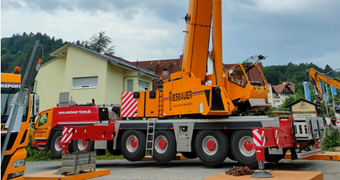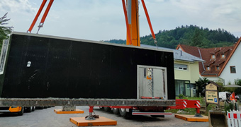 Die drei Teile, darunter das schwerste Teil mit über 40 Tonnen, wurde mittels drei Sondertransporten zur Baustelle transportiert.
