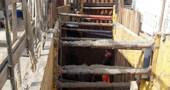 Zur Herstellung eines Regenüberlaufes wurde in der letzten Woche eine ca. 11 m lange, 5 m breite und 5,50 m tiefe Baugrube ausgehoben.