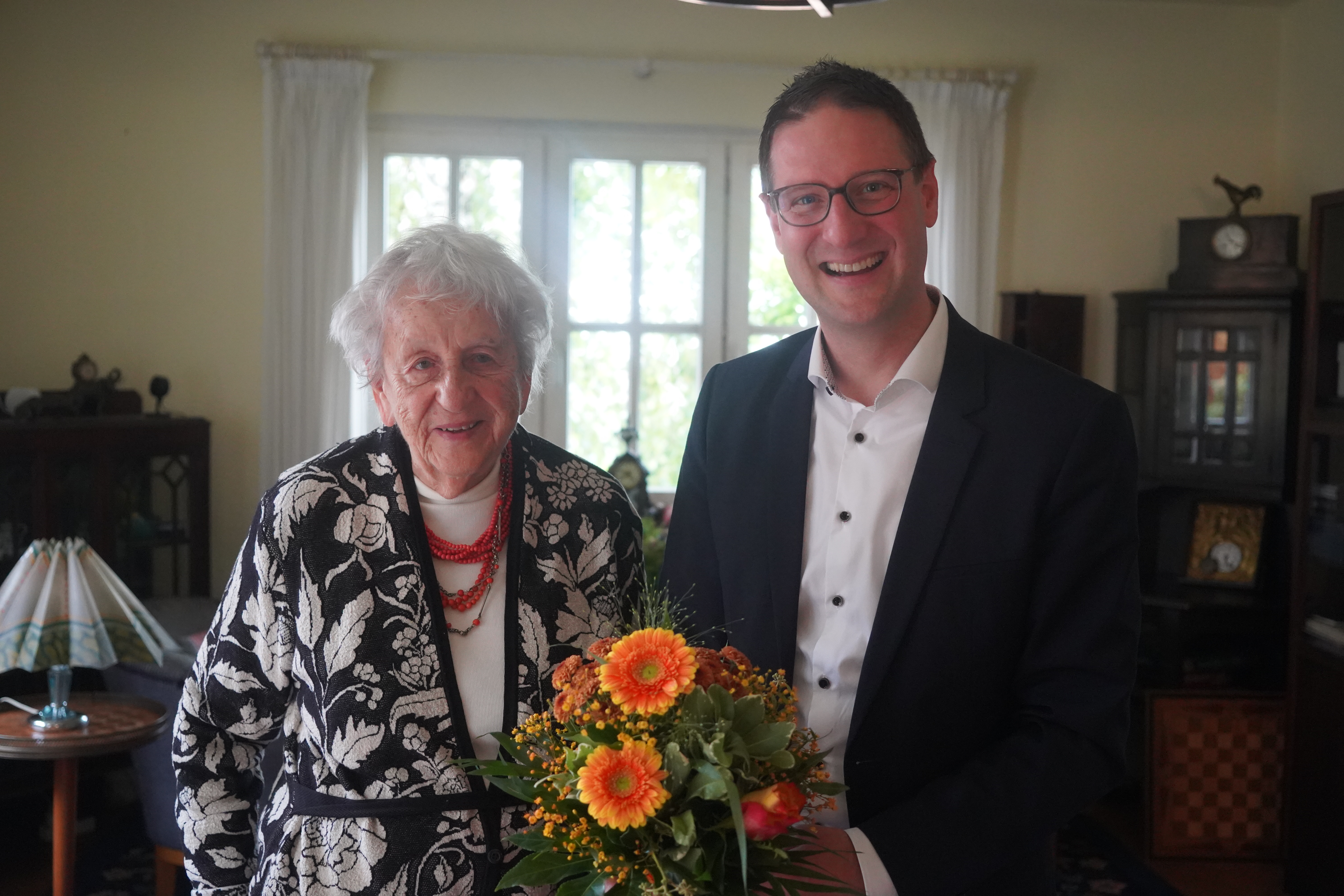 Ingrid Noll feiert ihren 90. Geburtstag. Die Ehrenbürgerin Weinheims gilt als Grande Dame der deutschsprachigen Kriminalliteratur und begeistert seit mehr als drei Jahrzehnten mit schwarzem Humor, psychologischem Scharfsinn und unverwechselbarer Erzählkunst. Oberbürgermeister Manuel Just ließ es sich nicht nehmen, die Jubilarin an ihrem Ehrentag persönlich zuhause zu besuchen und ihr im Namen der Stadt die herzlichsten Glückwünsche zu überbringen.
