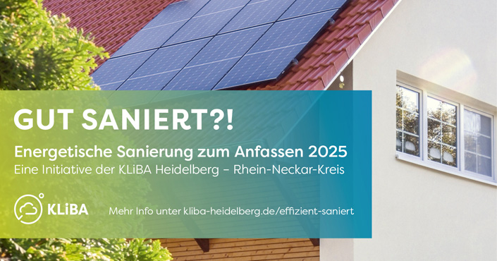 Im Frühjahr 2025 fanden in den teilnehmenden Kommunen (Brühl, Eberbach, Heidelberg, Hirschberg, Laudenbach, Mühlhausen, Schwetzingen, Sinsheim und Weinheim) Themen- und Vortragsabende unter dem Titel GUT SANIERT?! ANHÖREN! statt, in deren Fokus folgende Fragen standen: Wie gelingt die Altbausanierung? Welche Heiztechnik ist für mein Haus geeignet? Welche Fördermittel gibt es? Ist Photovoltaik auch auf meinem Haus sinnvoll?