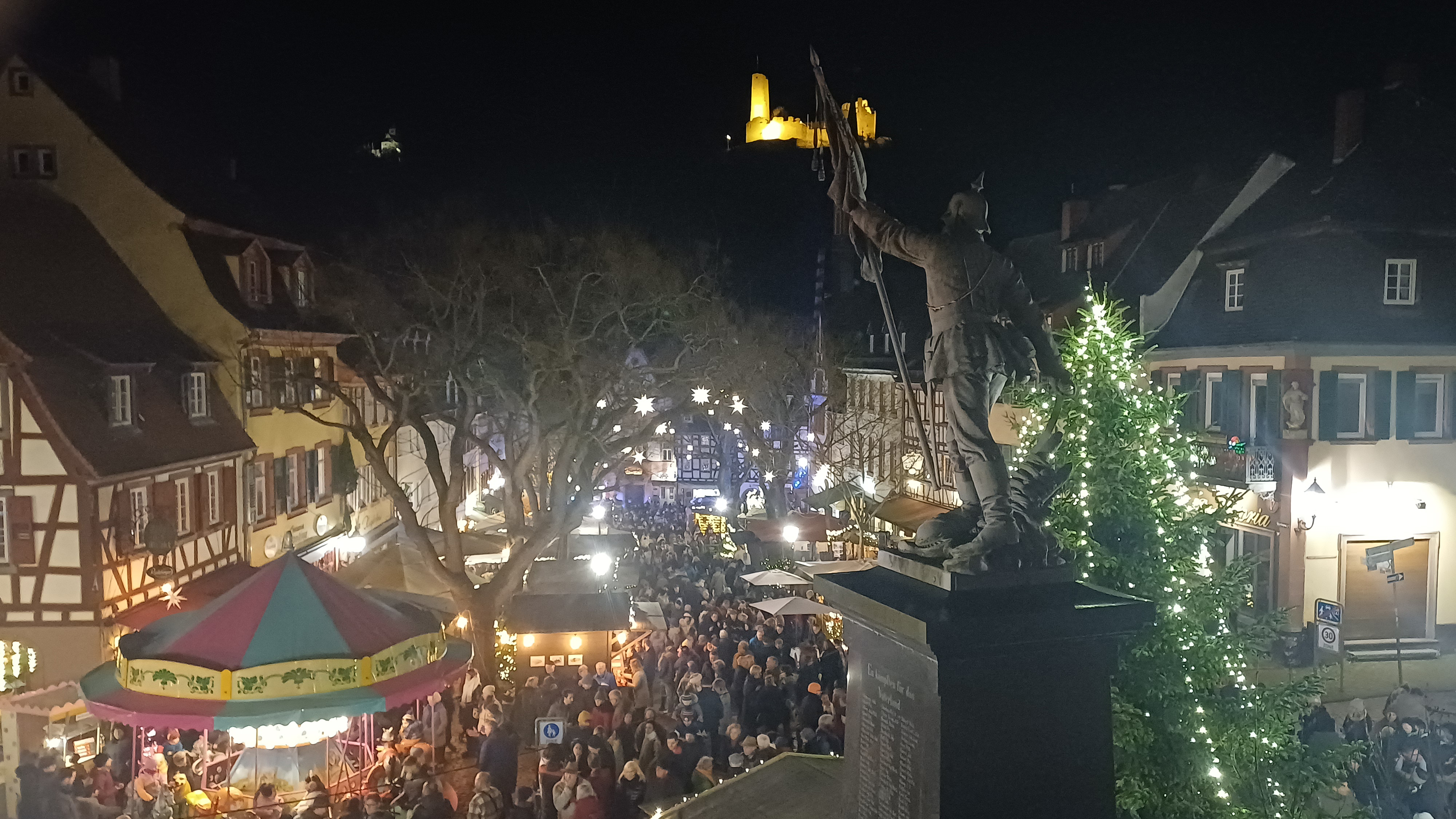 Oberbürgermeister Manuel Just nutzte die Gelegenheit, den Besuchern ein friedvolles Weihnachtsfest zu wünschen. Es sei wichtig, dass Menschen zu dieser Zeit auf einem Platz zusammenrücken, um Gemeinsamkeit zu spüren. Diese gesellschaftliche Solidarität habe Weinheim auch im Heimattage-Jahr gestärkt, betonte der OB. Es sei für Weinheim ein besonderes Jahr gewesen, weil sich Menschen bei Projekten und Veranstaltungen der Heimattage nähergekommen sind – in der gemeinsamen Idee und ihrem Heimatgefühl vereint. Auch die IG Marktplatz und die Stadt seien dieses Jahr nochmal näher zusammengerückt, um den Weihnachtsmarkt auch bei steigenden Sicherheitsmaßnahmen zu bewahren.